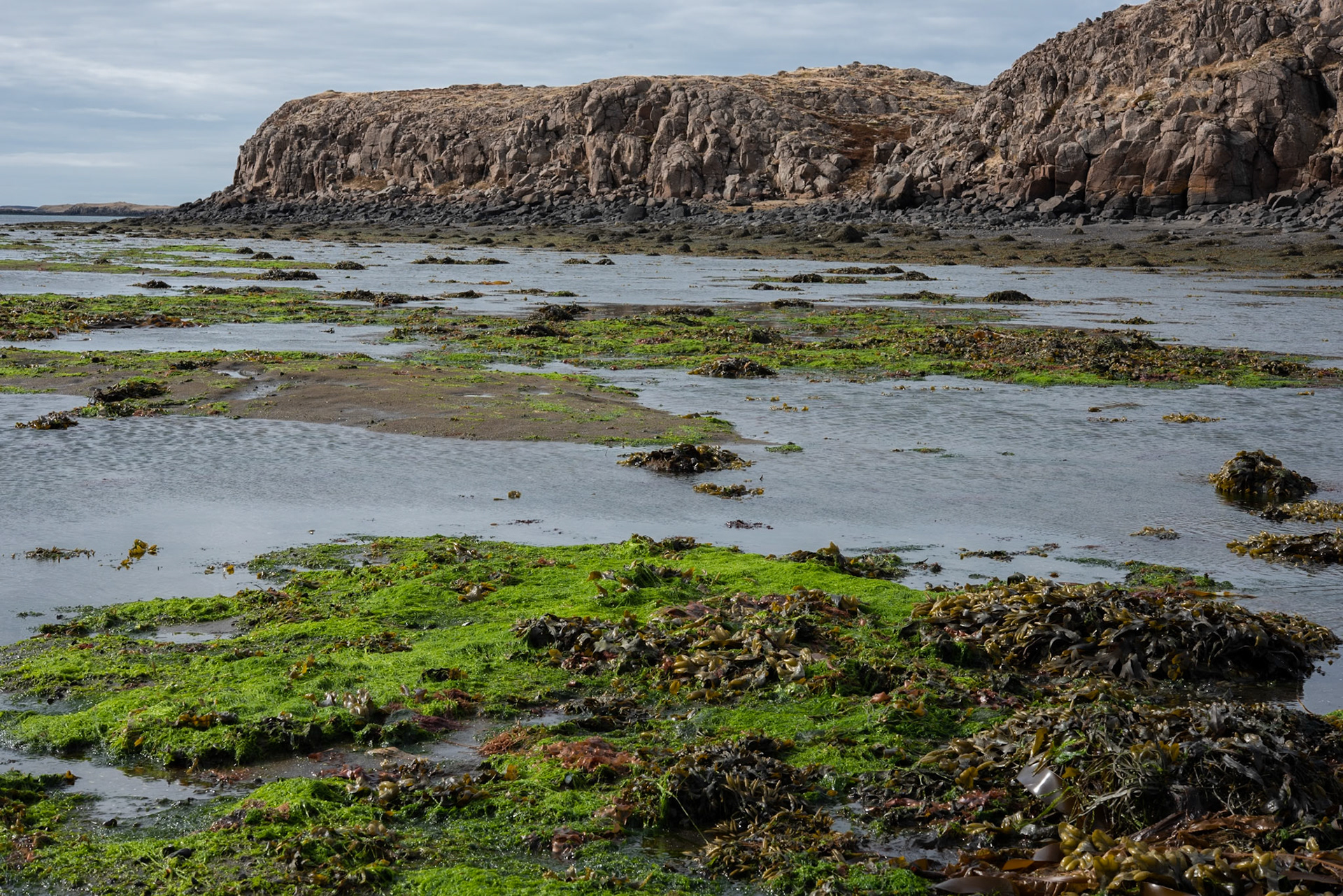 ©SVANA The soft sandy beach and the rough rocks make contrasting features in the landscape. Seaweed and barnacles growing on the rocks and the nearby mountains create a colorful environment.Location: Breiðavík, Snæfellsnes, West Iceland.