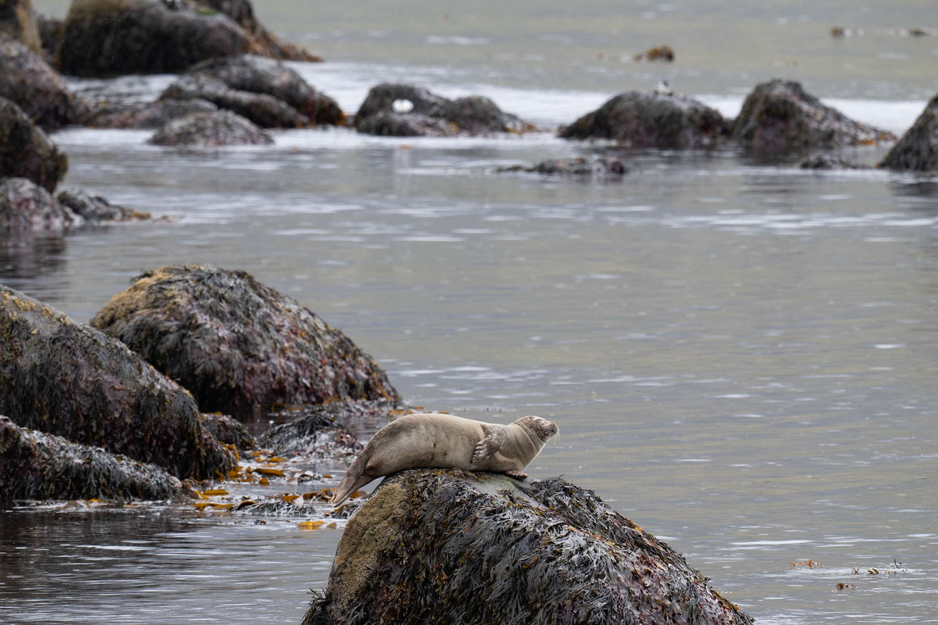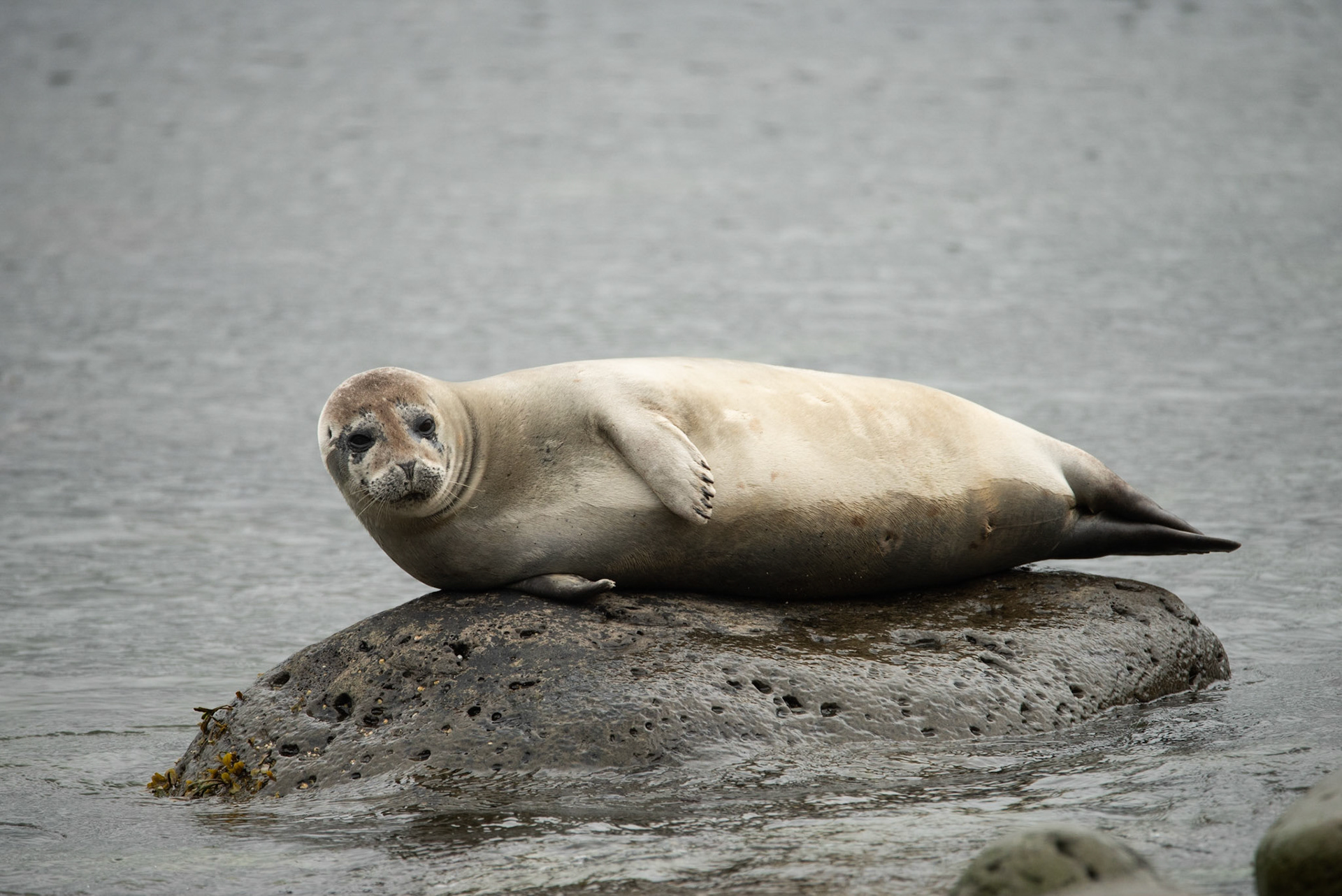 ©SVANA The harbor seal(Phoca vitulina, landselur in Icelandic) is one of the two species of seal that regularly pup in Iceland. Here, two females are resting at Hvítanes, Ísafjarðardjúp, while a male desperately tries to get some attention.