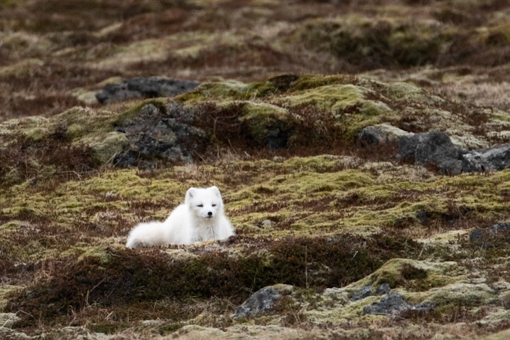 ©SVANA The arctic fox is the only native terrestrial mammal in Iceland. I was really surprised to bump into this beautiful white fox resting near the shore in Skógarströnd, West Iceland. Why surprised? Firstly because foxes are not an everyday sight in this area, secondly because the white colour morph is rare in the lowlands, and thirdly because the arctic fox is more active during dusk and dawn. But there it was, and the funny thing was that it didn’t seem very surprised to see me